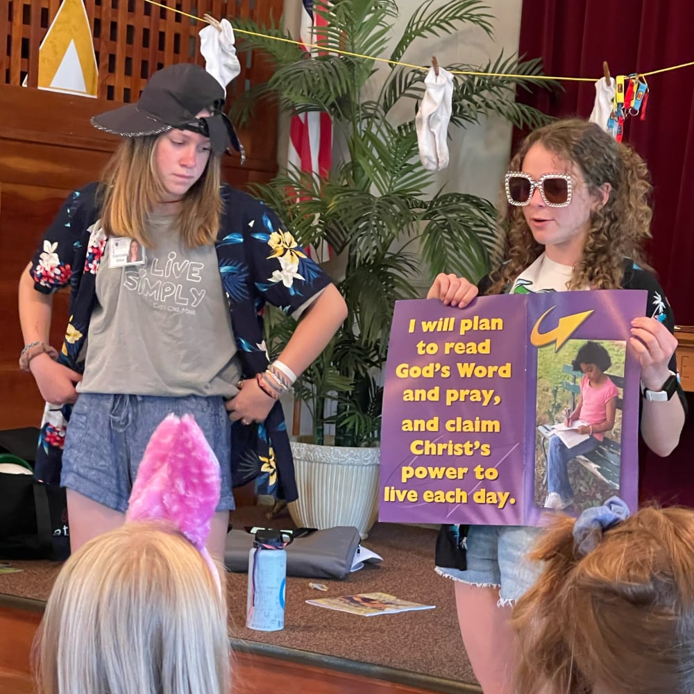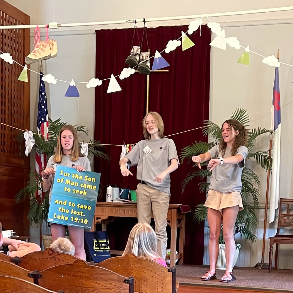 Kids Klub– summer program of music, games, Bible lessons, skits, and snacks for young children.